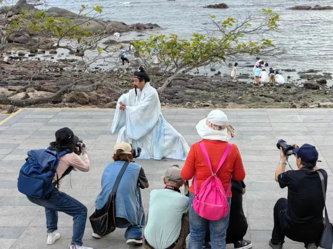 参加此次采风活动摄影家们,满怀激情用镜头抓拍和捕捉大小洞天旅游区最美的自然风光与人文景观:椰影婆娑的海边,夕阳西下带来了光影盛宴,蜿蜓曲折的滩涂礁石,闪烁着迷人的金色光芒;在落日余晖中,海边灯塔的剪影显得格外优雅,它默默地凝视着无尽的海洋,为归航的船只燃起希望之光……这些美景都成为摄影家们拍摄创作的最佳题材。采风现场,一些摄影家还运用现代无人机航拍设备,高空俯拍景区山、海、石、林的美景画面,创作了不少风光佳作。